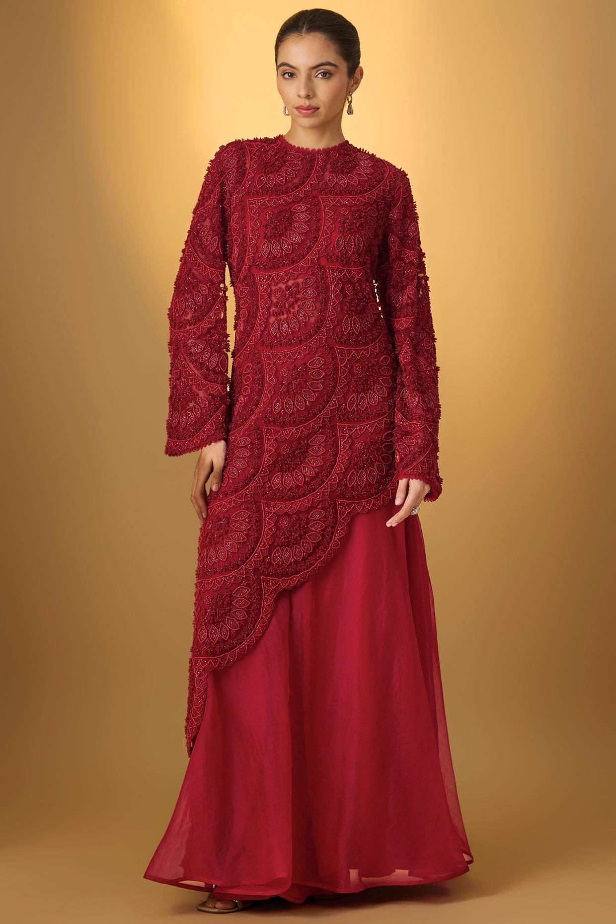 Kurta with pants, palazzo, or churidar — the backbone of Indian fashion. From embellished wedding-ready sets to casual printed cotton. Designers like Anita Dongre, Biba, and Libas to high-end labels on Aza and Pernia’s.