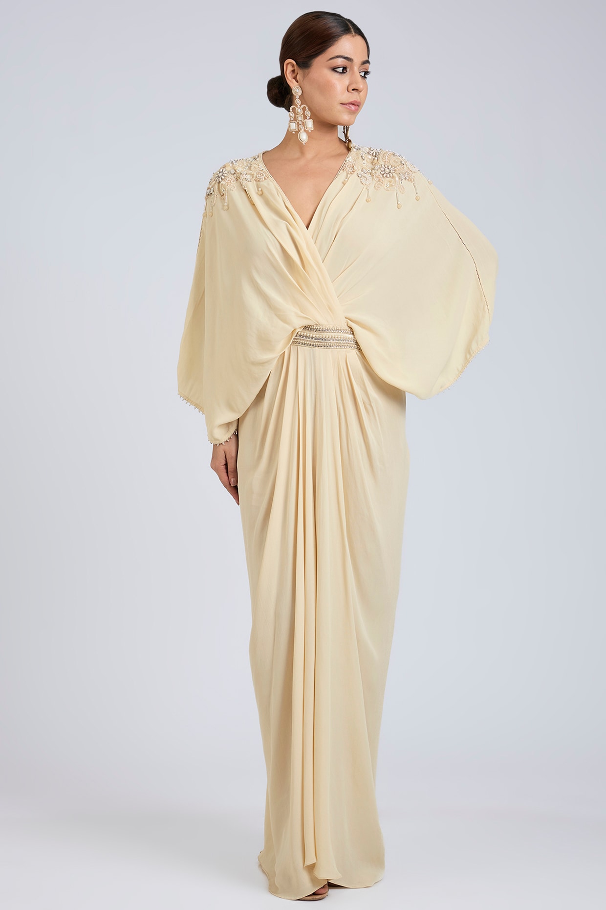 Tarun Tahiliani Ivory Georgette Pearl Embroidered Kaftan