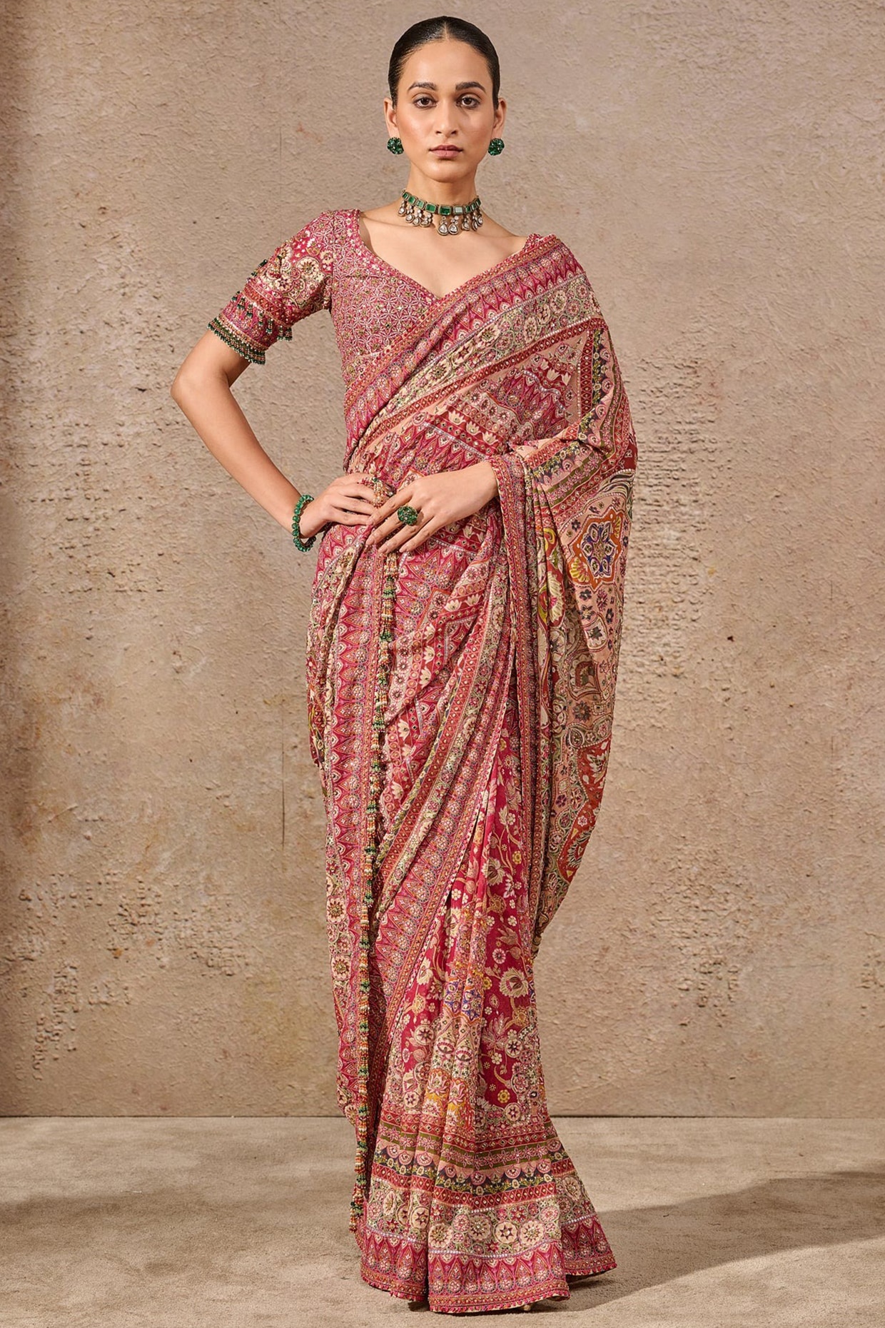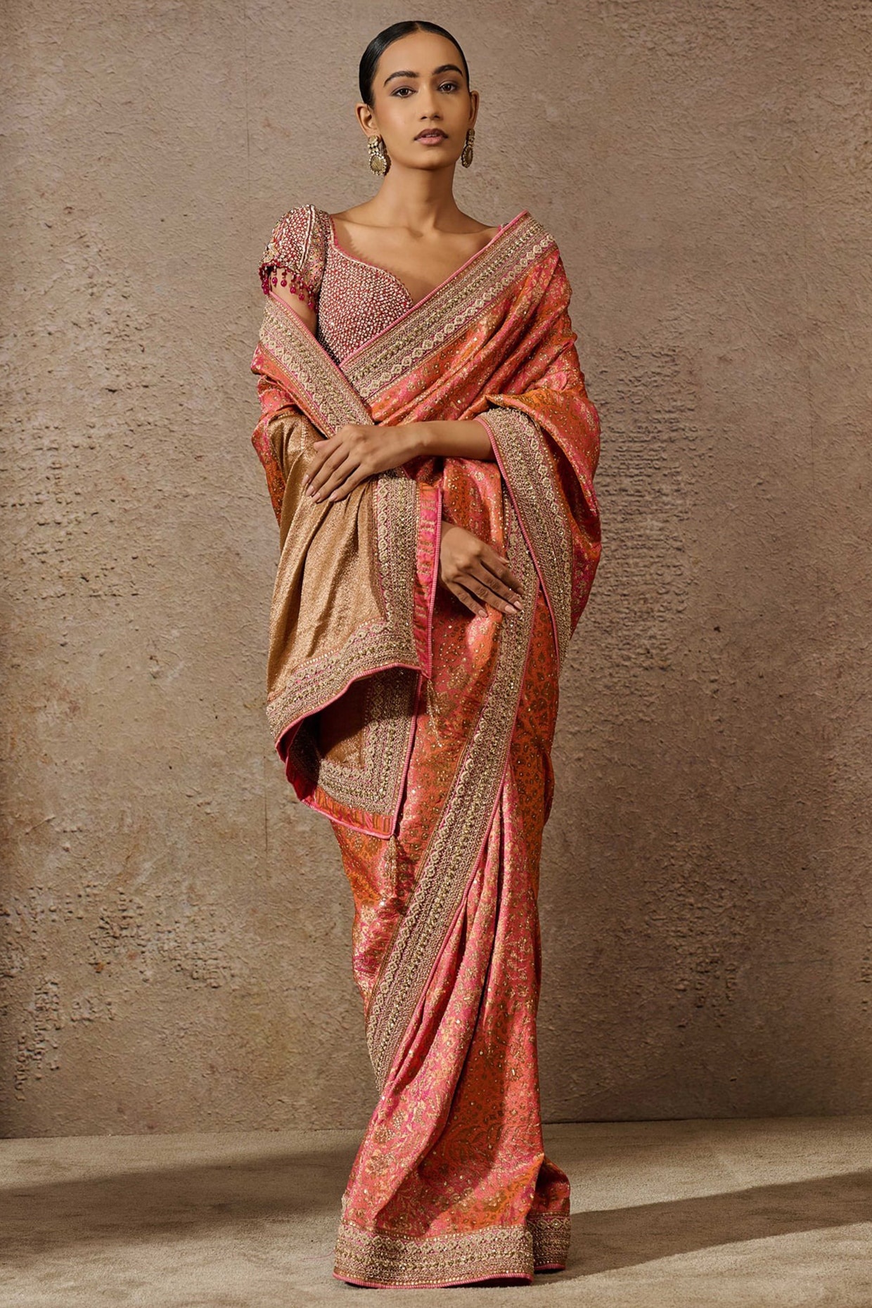 Tarun Tahiliani Candy-Colored Brocade Hand Embroidered Saree Set