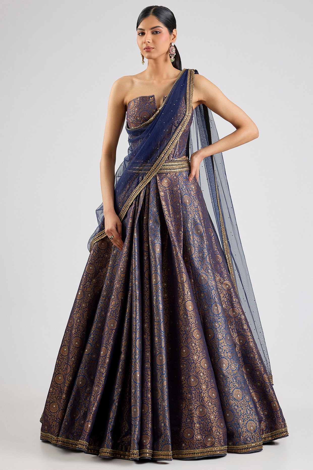 Tarun Tahiliani Blue Brocade Lehenga Set